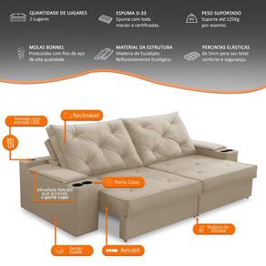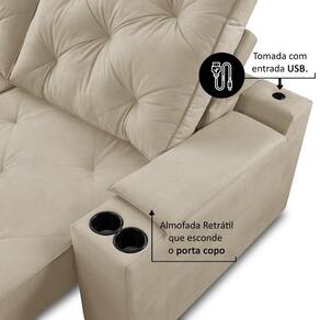 O Sofá Retrátil Reclinável Helena com Porta Copos e USB oferece conforto máximo com ajuste de assento e inclinação, além de conveniência com porta copos e entradas USB integradas. Seu design elegante combina funcionalidade e estilo, perfeito para relaxar e entreter.