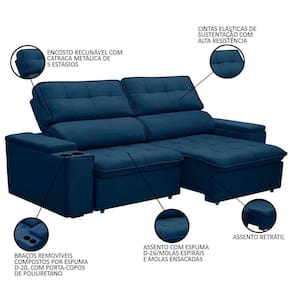 Ei, psiu! Procurando um sofá confortável para relaxar e curtir o momento? Então, você precisa conferir o Sofá Retrátil Reclinável 3 Lugares 230cm Ginevra F05 Veludo Azul, da Mpozenato!