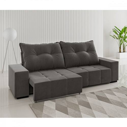 Sofá Retrátil Reclinável 3 Lugares 230cm Veludo Moscato Viero O estofado de 4 lugares retrátil e reclinável Moscato oferece um conforto incomparável, sendo perfeito para quem busca praticidade e aconchego no dia a dia. Seu encosto é composto por 100 fibra siliconada, garantindo um suporte macio e confortável. A estrutura em eucalipto é altamente resistente, proporcionando maior durabilidade ao móvel. Equipado com 4 rodízios incolores, o estofado facilita a movimentação, enquanto os 8 pés de plástico oferecem estabilidade e segurança. A espuma do assento é de densidade D23, oferecendo conforto na medida certa para longos períodos de uso. Ideal para salas de estar, esse estofado combina funcionalidade e estilo, tornando qualquer ambiente mais agradável. Além disso, o sistema retrátil e reclinável garante uma experiência personalizada para o relaxamento.