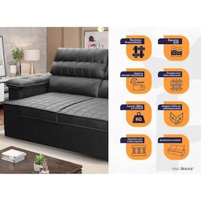 Ele possui encosto reclinável em cinco posições, proporcionando-lhe mais conforto na hora do descanso. Não para por aí: seu assento retrátil conta com espuma D23 e molas bonnel, transformando seu sofá em uma verdadeira cama para assistir seu filme preferido.