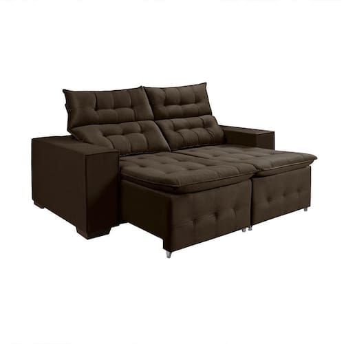 Sofá Retratil Reclinável 3 Lugares Pillow Em Veludo 1,90 Café Marrom