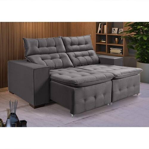 AS IMAGENS SÃO MERAMENTE ILUSTRATIVAS E PODEM SOFRER VARIAÇÕES DE COR E PEQUENOS DETALHES DE ACORDO COM O SEU MONITOR, ILUMINAÇÃO DO AMBIENTE E ATÉ MESMO A SUA PERCEPÇÃO VISUAL.Sofà Retratil ReclinÃvel 3 Lugares Pillow em Veludo Tamanho 1,90 Grafite