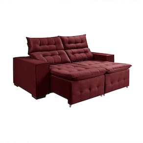 AS IMAGENS SÃO MERAMENTE ILUSTRATIVAS E PODEM SOFRER VARIAÇÕES DE COR E PEQUENOS DETALHES DE ACORDO COM O SEU MONITOR, ILUMINAÇÃO DO AMBIENTE E ATÉ MESMO A SUA PERCEPÇÃO VISUAL.Sofà Retratil ReclinÃvel 3 Lugares Pillow em Veludo Tamanho 1,90 Vinho