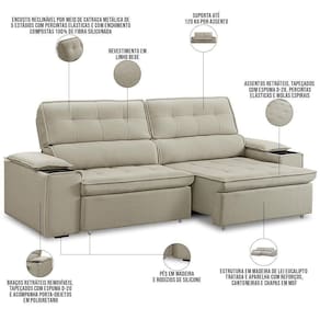 Conheça o Sofá Retrátil Reclinável 215 cm Bilac, da Lyam Decor: um verdadeiro convite ao conforto e à praticidade.