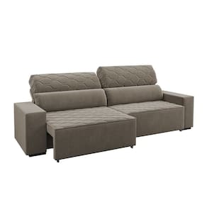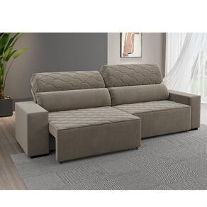 Sofá Retrátil Reclinável 4 Lugares 250cm Veludo Santiago Viero. O Estofado de 4 lugares retrátil e reclinável Santiago oferece um conforto incomparável, sendo perfeito para quem busca praticidade e aconchego no dia a dia. Seu encosto é composto por 100 fibra siliconada, garantindo um suporte macio e confortável. A estrutura em eucalipto é altamente resistente, proporcionando maior durabilidade ao móvel. Equipado com 4 rodízios incolores, o estofado facilita a movimentação, enquanto os 8 pés de plástico oferecem estabilidade e segurança. A espuma do assento é de densidade D23, oferecendo conforto na medida certa para longos períodos de uso. Ideal para salas de estar, esse estofado combina funcionalidade e estilo, tornando qualquer ambiente mais agradável. Além disso, o sistema retrátil e reclinável garante uma experiência personalizada para o relaxamento.