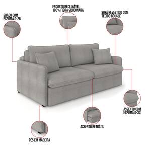 Sofá Retrátil Reclinável 4 Lugares 254cm Maili Bouclê K01 - D`Rossi - Cinza