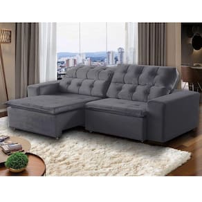 Sofá Retrátil Reclinável 5Lugares 2,7m Veludo Cinza Megasul - Marrom