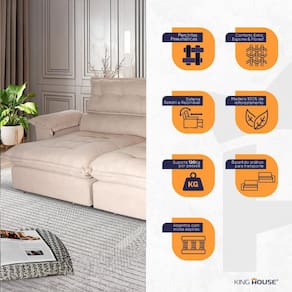 Imagine ter em sua casa um sofá que não só combina com seu ambiente, mas também transforma seus momentos de descanso em uma experiência única. O Sofá Aconchego é pensado para proporcionar conforto de verdade: seu encosto reclinável ajusta-se em cinco posições, permitindo relaxar como você merece, seja para ler um livro, bater papo ou simplesmente descansar.