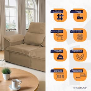O sofá América oferece encosto reclinável com cinco posições, permitindo ajustar o conforto ideal para relaxar. Seu assento retrátil é feito com espuma D28 e possui suporte com molas espirais, proporcionando um nível de conforto semelhante ao de uma cama - perfeito para maratonar suas séries ou assistir a um bom filme. Além disso, ele possui almofadas nos braços preenchidas com fibra siliconada, garantindo maciez extra para momentos de descanso completo.