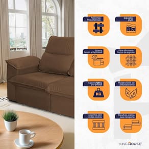 O sofá América oferece encosto reclinável com cinco posições, permitindo ajustar o conforto ideal para relaxar. Seu assento retrátil é feito com espuma D28 e possui suporte com molas espirais, proporcionando um nível de conforto semelhante ao de uma cama - perfeito para maratonar suas séries ou assistir a um bom filme. Além disso, ele possui almofadas nos braços preenchidas com fibra siliconada, garantindo maciez extra para momentos de descanso completo.