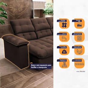 Ele possui encosto reclinável em cinco posições, proporcionando-lhe mais conforto na hora do descanso, mas não para por aí, seu assento retrátil conta com espuma D28 e mola bonnel, transformando seu sofá em uma verdadeira cama para assistir seu filme preferido.