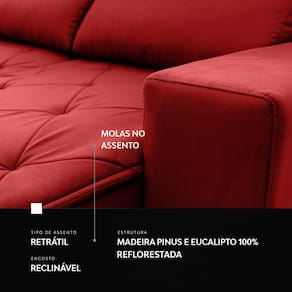 Ele possui encosto reclinável em cinco posições, proporcionando-lhe mais conforto na hora do descanso. Não para por aí: seu assento retrátil conta com espuma D28 e molas espirais, transformando seu sofá em uma verdadeira cama para assistir seu filme preferido.