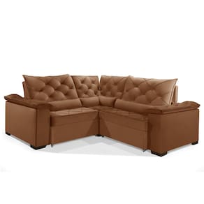 Sofá Retrátil Reclinável BERLIM DE CANTO 2.70 x 2.70 ESTILO ESTOFADOS - França Velusoft COR "TERRACOTA" - Bege