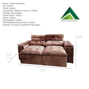 Sofá Retrátil e Reclinável com Pillow 2m Tecido Suede é um sofá de ótima qualidade, que irá transformar o seu lar, já que além de possuir um lindo designer, ele é D28, o que irá te proporcionar muito conforto. O Sofá Retrátil e Reclinável com Pillow foi criado para deixar seu ambiente, sala de estar ou sala de vídeo ainda mais aconchegante e confortável, pois nada melhor que chegar em casa e descansar assistindo aquela série no sofá ideal. Medidas aproximadas: *200cm comprimento *0.96cm altura *0.90cm assento fechado *1.26cm assento aberto Imagens meramente ilustrativas *Tecidos e estampas podem sofrer alteração na tonalidade devido a disponibilidade em nosso estoque. *Não nos responsabilizamos por eventuais despesas extras ou qualquer dificuldade no ato da entrega, sendo o comprador total responsável. *Não içamos em janelas, telhados, terraços, muros e etc.