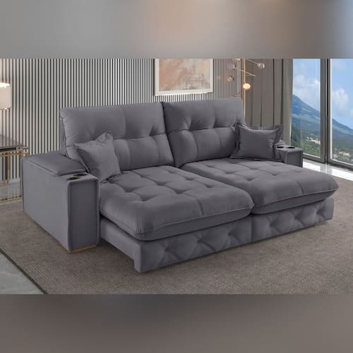 O Sofá Retrátil e Reclinável Istambul combina design e modernidade em um único sofá. Ideal para uma sala de estar ou home cinema , o Istambul proporciona conforto para toda a família. Em diversas medidas ele atende necessidades em que é preciso um sofá mais amplo ou para locais em que é preciso um sofá na medida certa. Além disso, ele é versátil pois se apresenta em uma variedade de cores que se adaptam a diferentes estilos de decoração. O destaque do sofá Istambul esta nas possibilidades que ele apresenta, são 4 opções para atender as mais diversas necessidades: Padrão, Porta Copos, Porta Copos e USB e USB. Garanta já seu sofá Istambul e tenha estilo, modernidade e conforto em sua casa! Acompanha Almofadas extras: 02 Almofada do assento: Fixa Almofada do encosto: Fixa Altura do assento até o chão: 50 cm Altura do Encosto: 76 cm Altura dos Pés: 2 cm Ambiente Principal: Sala de Estar Complexidade da Montagem: Média: pode ser montado por mais de uma pessoa e/ou necessite de maior conhecimento para montagem Cor: Cinza Cor do Produto: Cinza Densidade do Assento: D-26 Densidade do Encosto: Camadas de Densidades Diferentes Enchimento do Assento: Hyper Soft Enchimento do Encosto: Fibra Siliconada Estilo de Braço: Braços Pillow Top Firmeza do Assento: Médio Itens Inclusos: 01 Sofá e Manual de Montagem Manual de Especificação Técnica: https://cdn2.madeiramadeira.com.br/atributo/vicam-estofados/2027335-2041-1717617793838.pdf Manual de Montagem e Instalação: https://cdn2.madeiramadeira.com.br/atributo/vicam-estofados/2027334-2041-17176177891214.pdf Material dos Pés: Pinus Montagem Flex: Não Necessita Montagem: Sim Nível de Conforto: Macio Origem do Produto: Nacional Peso: 86 kg Pet Friendly: Não Porta Copos: Sim Possui Baú: Não Possui Entrada USB: Não Possui Percintas Elásticas: Sim Possui Pés: 08 Possui Rodízio: Sim Profundidade Quando Estendido: 190 cm Recomendações de Uso, Manutenção e Limpeza: Limpar com pano úmido sem uso de produtos químicos Revestimento do Braço: Veludo Rodízio com Trava: Sim Sistema de Montagem: Encaixe Suporta Até (kg): 160 kg Tecido Predominante: Veludo Tipo de Encosto: Regulável Tipo de Mola: Molas Bonnel