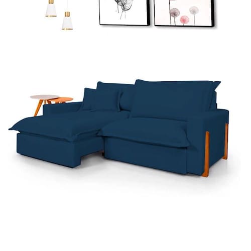 AS IMAGENS SÃO MERAMENTE ILUSTRATIVAS E PODEM SOFRER VARIAÇÕES DE COR E PEQUENOS DETALHES DE ACORDO COM O SEU MONITOR, ILUMINAÇÃO DO AMBIENTE E ATÉ MESMO A SUA PERCEPÇÃO VISUAL.Sofà RetrÃtil ReclinÃvel Davi com Molas Ensacadas no Assento Tecido Azul Marinho 2,50m