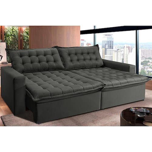 Sofá Retrátil Reclinável e Cama 2,15m Cama inBox Flex. Suede - Cinza
