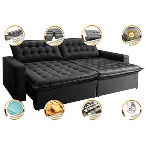 *Assentos: Feitos com espuma D33, Molas Bonnel, Fibra Siliconada, Percintas Dual Securit (Percintas Italianas Elásticas e Pneumáticas) e Madeira de Eucalipto, sua estrutura foi desenvolvida para dar mais qualidade e praticidade ao seu dia a dia. Seus assentos são retráteis, dando mais modernidade a sua sala, além de ser uma excelente opção para passar horas deitado/sentado sem dores e/ou desconfortos.