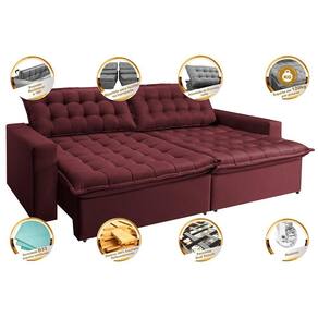 Sofá Retrátil Reclinável e Cama 2,35m Cama inBox Flex. Suede - Vinho