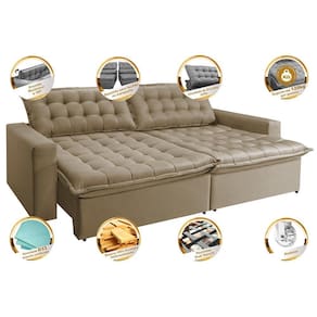 Sofá Retrátil Reclinável e Cama 2,95m Cama inBox Flex. Suede - Bege
