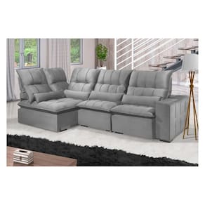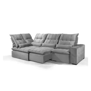 Sofá Retrátil Reclinável ELLOA DE CANTO COM CHAISE 3.65 x 1.80m ESTILO ESTOFADOS - França Velusoft COR "PRATA"