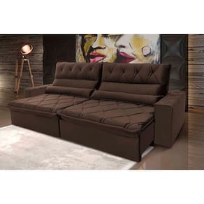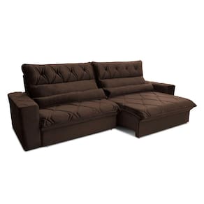 Sofá Retrátil Reclinável França 2,50m Suede Velut Marrom c/ Molas no Assento - King House