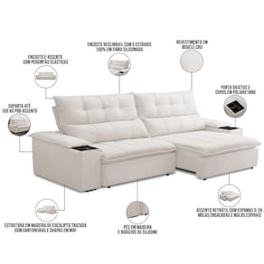 Altura: 110 cm | Color: Branco | ColorFamily: Branco | ColorSimple: Branco | ColorSupplier: Cru | Cor: CRU | Cor dos pés: -1 | Densidade da espuma do assento: D-26 | Desenho do tecido: Liso | Estilo: Moderno | Fabricante: Lyam Decor | Formato do sofá: Linear | Largura: 230 cm | Linha: Sala de Estar, Living | Material: Madeira de lei (Eucalipto) devidamente tratada e aparelhada com reforços e cantoneiras e chapas em M | Material de enchimento do encosto: 100% em fibra siliconada. | Material do estofamento: Bouclê | MaterialFamily: Tecido, Madeira | Mecanismo de abertura do produto: -1 | Model: Ártico | Orientação do Sofá: -1 | OriginCountry: Nacional | OriginState: PR | Peso: 70 kg | Peso máximo suportado: 100 kg | ProductContents: 01 Sofá | ProductHeight: 230 cm | ProductInstructions: Produto para uso em ambiente interno, nao devendo ficar exposto ao sol, calor e umidade excessivos. | ProductLength: 98 cm | ProductWarranty: 90 dias após o recebimento do produto | ProductWeight: 70 kg | ProductWidth: 110 cm | Profundidade: 98 cm | Quantidade de Caixas de embalagem: 1 | Requer montagem: Não | SizeDescription: Altura: 110 cm x Largura: 230 cm x Profundidade: 94 cm | SupplierSimpleName: Sofá Retrátil Reclinável Para Sala de Estar Living 230cm Ártico F04 Bouclê Cru - Lyam Decor | Tipo de produto: Sofá | Unidades por kit: 1