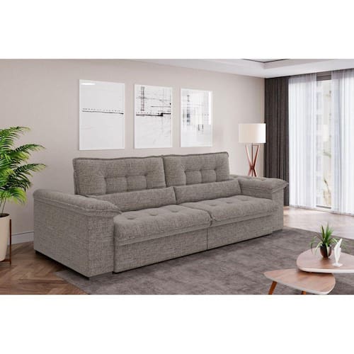 Se você está procurando um sofá robusto, elegante e confortável. Aqui está nosso sofá Majestoso de 250 metros, revestido em tecido de linho que une a qualidade e beleza nos detalhes. Suas principais características são maciez, durabilidade, facilidade de limpeza. Ele é um dos tecidos mais agradáveis para a combinação de elegância com conforto e refrescância. Indicado para sala de estar, tv , quarto.. Esse sofá é perfeito para maratonar aquela serie favorita, um bom descanso após um dia longo de trabalho... Acompanha Almofadas extras: 02 Almofada do assento: Fixa Almofada do encosto: Fixa Altura do assento até o chão: 48 Altura do Encosto: 70 Altura dos Pés: 5 Ambiente Principal: Sala de Estar Complexidade da Montagem: Baixa: pode ser montado por uma pessoa sozinha Cor: Marrom Cor do Produto: Marrom Densidade do Assento: D-28 Densidade do Encosto: D-26 Enchimento do Assento: Espuma Enchimento do Encosto: Espuma Estilo de Braço: Braços Largos Firmeza do Assento: Médio Itens Inclusos: 1 Sofá Material dos Pés: Plástico Resistente Necessita Montagem: Sim Origem do Produto: Nacional Peso: 13.2 Pet Friendly: Não Possui Percintas Elásticas: Sim Possui Pés: 08 Possui Rodízio: Sim Profundidade Quando Estendido: 180 Recomendações de Uso, Manutenção e Limpeza: A higienização do tecido deve ser realizada apenas com detergente neutro e pano úmido e sem necessidade de esforço. Evite aplicar outros produtos químicos, pois eles podem danificar o seu produto. • Mantenha sempre uma frequência de limpeza para evitar manchas e danos. • Nos revestimentos com tonalidades claras, evite contato com tecidos que soltem tinta. Revestimento do Braço: Madeira Eucalipto, fibra siliconizada, Tecido Linho Rodízio com Trava: Sim Sistema de Montagem: encaixe Suporta Até (kg): 120 Tecido Predominante: Linho Tipo de Encosto: Regulável Tipo de Mola: Não Possui Ean: 7909903410011