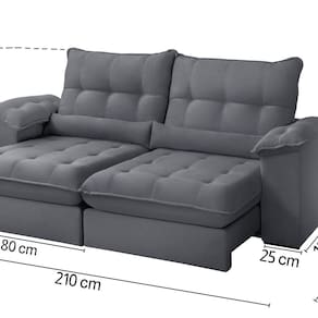 Compre hoje e tenha condições especiais de pagamento. Não espere mais para ter o conforto que você merece! Produto Montado: Não Acompanha Almofadas extras: 02 Almofada do assento: Fixa Almofada do encosto: Fixa Altura do assento até o chão: 48.0000 Altura do Encosto: 67 cm Altura dos Pés: 5 cm Altura Máxima dos Pés: 5.0000 Ambiente Principal: Sala de Estar codigo_ean: 7909903971215 Cor: Cinza Cor do Produto: Cinza Densidade do Assento: D-28 Enchimento do Assento: Espuma Enchimento do Encosto: Fibra Siliconada Firmeza do Assento: Médio Informações Complementares: Pillowtop 25 Cm Altura Itens Inclusos: 01 Sofá Chicago Material dos Pés: Madeira Montagem Flex: Não Necessita Montagem: Não Origem do Produto: Nacional Peso: 50 kg Pet Friendly: Não Porta Copos: Não Possui Baú: Não Possui Entrada USB: Não Possui Percintas Elásticas: Sim Possui Pés: 08 Possui Rodízio: Sim Profundidade Quando Estendido: 180 cm Recomendações de Uso, Manutenção e Limpeza: Limpar com pano levemente umidecido. Não utilzar produtos abrasivos. Revestimento do Braço: Veludo Rodízio com Trava: Não Suporta Até (kg): 120 kg Tecido Predominante: Veludo Tipo de Encosto: Regulável Tipo de Mola: Molas Ensacadas Marca: DECOR LAR