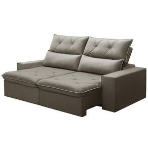 Unidades por kit: 1 | Cor: Marrom Claro | Requer montagem: Não | Altura: 115 cm | Tipo de produto: Sofá Retrátil Reclinável | Peso máximo suportado: 240 kg | Peso: 160 kg | Orientação do Sofá: Frontal | Mecanismo de abertura do produto: Manual, rodízios de silicone | Material do estofamento: Veludo | Material de enchimento do encosto: Fibra Siliconada | Linha: Sala de Estar | Estilo: Moderno | Formato do sofá: Linear | Desenho do tecido: Liso | Fabricante: Lyam Decor | Densidade da espuma do assento: D-26 | Quantidade de Caixas de embalagem: 2 | Cor dos pés: Marrom | Largura: 210 cm | Profundidade: 113 cm