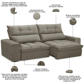 Sofá Retrátil Reclinável Para Sala 3 Lugares 210cm Asaph F04 Veludo Marrom Claro - Lyam Decor