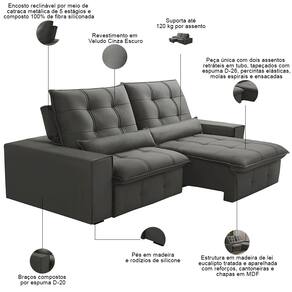 Revestimento em tecido Veludo de alta qualidade na tonalidade Cinza Escuro.