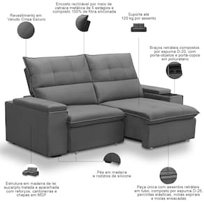 Este modelo retrátil reclinável foi pensado para quem valoriza cada momento de descanso, combinando tecnologia e conforto em um design que transforma qualquer ambiente. A estrutura em madeira e rodízios de silicone garante estabilidade e movimento suave, enquanto o encosto reclinável com catraca de 5 estágios permite encontrar a posição ideal para relaxar. A fibra siliconada oferece suporte ergonômico, e o tecido premium convida ao toque, tornando cada momento mais especial. O diferencial desse sofá 3 lugares está nos braços retráteis com porta-copos e porta-objetos, oferecendo praticidade sua rotina sem perder o estilo.