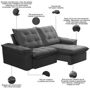 Imagine reunir os amigos para aquela noite de cinema, risadas e histórias compartilhadas, tudo isso em um sofá 3 lugares que abraça quem senta e transforma cada momento em puro relaxamento. Isso porque esse sofá vai além do convencional: o encosto reclinável e assento retrátil oferecem ajuste do ângulo perfeito para desfrutar de um conforto personalizado, basta um simples movimento, ele se abre e vira um refúgio perfeito para descansar ou receber visitas com todo o estilo, enquanto o visual moderno se adapta ao seu décor e eleva o charme do ambiente.