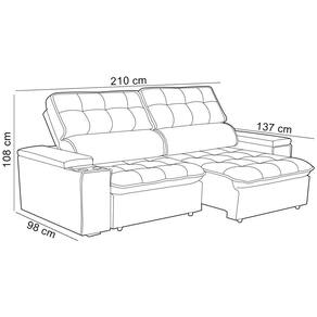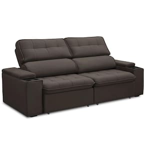 Unidades por kit: 1 | Cor: Marrom Escuro | Requer montagem: Não | Altura: 108 cm | Tipo de produto: Sofá Retrátil Reclinável | Peso máximo suportado: 240 kg | Peso: 60 Kg | Orientação do Sofá: Frontal | Mecanismo de abertura do produto: Manual, rodízios de silicone | Material do estofamento: Veludo | Material de enchimento do encosto: Fibra Siliconada | Linha: Sala de Estar | Estilo: Moderno | Formato do sofá: Linear | Desenho do tecido: Liso | Fabricante: Lyam Decor | Densidade da espuma do assento: D-26 | Largura: 210 cm | Cor dos pés: Marrom | Profundidade: 98 cm | Quantidade de Caixas de embalagem: 1