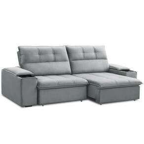 Sofá Retrátil Reclinável Para Sala 3 Lugares 230cm Zayn F04 Veludo Cinza Claro - Lyam Decor