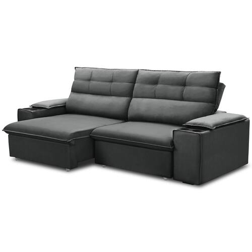 Com seu mecanismo retrátil e reclinável, você ajusta cada detalhe para criar a posição ideal - seja para maratonar sua série favorita, ler um bom livro ou receber amigos com todo o aconchego. Além disso, o design sofisticado surpreende pela funcionalidade: equipado com porta-copos integrados, mantém tudo ao alcance das mãos durante seus momentos de relaxamento. A combinação de molas espirais e espuma D-26 de alta densidade garante um apoio perfeito para o corpo, oferecendo conforto que dura horas sem perder a firmeza.