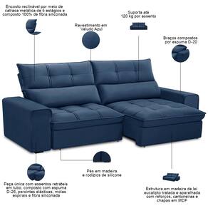 Quando o assunto é conforto inteligente com durabilidade, o Sofá Retrátil Reclinável Asaph 250cm chega para transformar seus momentos de relaxamento.