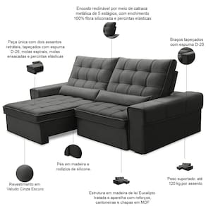 Revestimento em tecido Veludo de alta qualidade na tonalidade Cinza Escuro.