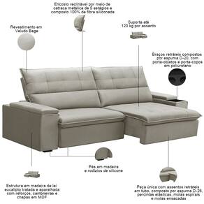 Imagine chegar em casa e ser recebido pelo abraço acolhedor do Sofá Retrátil Reclinável Niels 250cm.