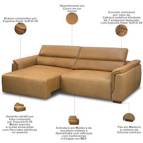 Dono de um design impecável, o Sofá Retrátil Reclinável Para Sala 4 Lugares 280cm Livorno L06 Couro Camel, da Lyam Decor, é a escolha certa para pessoas de gosto exigente, que não abre mão do conforto e estilo.