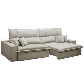 Unidades por kit: 1 | Cor: Bege | Requer montagem: Não | Tipo de produto: Sofá Retrátil Reclinável | Peso máximo suportado: 240 kg | Peso: 110 kg | Orientação do Sofá: Frontal | Mecanismo de abertura do produto: Manual, rodízios de silicone | Material do estofamento: Veludo | Material de enchimento do encosto: Fibra Siliconada | Linha: Sala de Estar | Estilo: Moderno | Formato do sofá: Linear | Desenho do tecido: Liso | Densidade da espuma do assento: D-26 | Cor dos pés: Marrom | Fabricante: Lyam Decor | Profundidade: 121 cm | Altura: 115 cm | Largura: 290 cm | Quantidade de Caixas de embalagem: 2