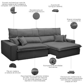 Na vida moderna, a sala de estar é o palco dos melhores momentos - desde sessões de cinema em família até animados encontros com amigos. E para esses momentos especiais, o Sofá Retrátil Reclinável Aisha 290cm chega como a escolha perfeita: espaçoso, versátil e incrivelmente confortável, ele foi pensado para transformar seu lar no verdadeiro refúgio do aconchego.