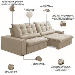 A tapeçaria com molas ensacadas e espirais oferece suporte ergonômico de alta performance, aliviando a coluna e proporcionando máximo conforto. Já com o encosto reclinável com 5 níveis de e mecanismo de assento retrátil, você personaliza cada posição, tornando-o perfeito para assistir TV, ler ou dormir. Além disso, os rodízios de silicone garantem mobilidade e proteção ao seu piso, enquanto o design moderno com linhas clean se adapta a qualquer decoração, desde salas de estar contemporâneas a ambientes clássicos. Fabricado com materiais de primeira qualidade, este sofá 4 lugares é a escolha ideal para quem valoriza durabilidade, conforto e estilo em móveis para sala.