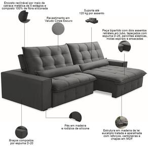 A tapeçaria com molas ensacadas e espirais oferece suporte ergonômico de alta performance, aliviando a coluna e proporcionando máximo conforto. Já com o encosto reclinável com 5 níveis de e mecanismo de assento retrátil, você personaliza cada posição, tornando-o perfeito para assistir TV, ler ou dormir. Além disso, os rodízios de silicone garantem mobilidade e proteção ao seu piso, enquanto o design moderno com linhas clean se adapta a qualquer decoração, desde salas de estar contemporâneas a ambientes clássicos. Fabricado com materiais de primeira qualidade, este sofá 4 lugares é a escolha ideal para quem valoriza durabilidade, conforto e estilo em móveis para sala.