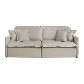 Produto feito com madeira de reflorestamento e revestido com tecido em linho. No assento, além da espuma D28, contamos com as molas de aço que auxíliam na sustentação e retorno do nível, aumentando o conforto e durabilidade do produto. O encosto possui fibra de silicone. Possui ainda rodinhas de silicone e pés de madeira maciça e Kit USB Acompanha Almofadas extras: Não Almofada do assento: Removível Almofada do encosto: Removível Altura do assento até o chão: 50 cm Altura do Encosto: 45 cm Ambiente Principal: Sala de Estar Complexidade da Montagem: Baixa: pode ser montado por uma pessoa sozinha Cor: Bege Cor do Produto: Bege Densidade do Assento: D-28 Densidade do Encosto: Camadas de Densidades Diferentes Enchimento do Assento: Espuma Enchimento do Encosto: Fibra Siliconada Estilo de Braço: Braços Redondos Firmeza do Assento: Macio Informações Complementares: Kit USB Itens Inclusos: 1 Sofá, Manual de Montagem Linha ou Coleção: Bardot Manual de Montagem e Instalação: https://product-hub-prd.madeiramadeira.com.br/873887/documents/5396f626-2418-4510-973b-9331dcca92a24390estofadobardotestofart.pdf Material dos Pés: Madeira Montagem Flex: Não Necessita Montagem: Sim Origem do Produto: Nacional Peso: 90 kg Pet Friendly: Não Possui Entrada USB: Não Possui Percintas Elásticas: Sim Possui Pés: 08 Possui Rodízio: Não Profundidade Quando Estendido: 154 cm Recomendações de Uso, Manutenção e Limpeza: Não expor ao sol ou fonte de calor; Não utilizar produtos de limpeza como detergente, álcool, solventes, ou produtos químicos; Para a limpeza, utilizar pano umedecido em água, sabão neutro e escova de cerdas macias, deixando secar a sombra. Em caso de excesso de poeira, usar aspirador de pó; Não provocar tensões desproporcionais no assento do sofá, provocadas pro quedas ou pulos; Evitar contatos com animais; Preservar o produto de objetos aquecidos ou pontiagudos; Mantê-lo em local arejado; Transportar com o máximo de cautela. Sistema de Montagem: Parafusos Suporta Até (kg): 100 kg Tecido Predominante: Linho Tipo de Encosto: Regulável Tipo de Mola: Molas Bonnel Ean: 7909903451434