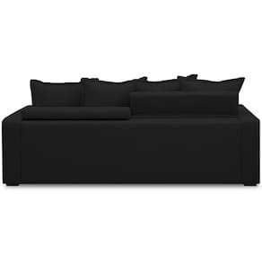 Encosto reclinável por meio de catraca metálica com 5 estágios e almofadas soltas 100% em fibra siliconada.