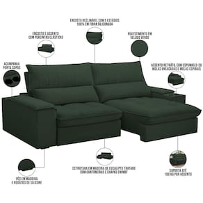 Sofá Retrátil Reclinável Para Sala De Estar Living 230cm Nápoles F04 Veludo Verde - Lyam Decor