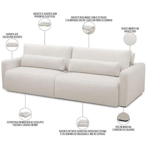O Sofá Retrátil Reclinável Para Sala de Estar Living 240cm Sevilha é a combinação perfeita de conforto e estilo para sua sala de estar. Feito com materiais de alta qualidade, com revestimento em linho e estrutura de madeira de eucalipto e MDF, este sofá para sala é durável e resistente. Com seu encosto reclinável e assento retrátil, você pode ajustar o nível de conforto de acordo com suas necessidades, enquanto os pés de madeira adicionam um toque elegante ao design. Com espaço para até três pessoas, este sofá retrátil e reclinável é ideal para receber amigos e familiares, tanto para assistir a um filme ou relaxar após um longo dia, sempre com máximo conforto e bem-estar. Adquira agora mesmo este sofá moderno e transforme sua sala em um espaço acolhedor e versátil.