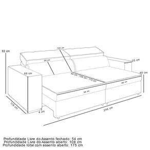 Profundidade total com assento aberto: 175 cm